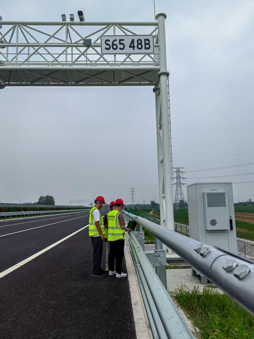 在徐州至明光高速公路賈汪至睢寧段(徐州東部繞越高速公路)機電工程施工項目現場,工程技術部的伙伴們正頂著將近40℃的高溫,調試著道路門架的車牌識別設備。汗水順著他們的工裝滑落,浸透了手套,卻始終沒有停下手中的動作。